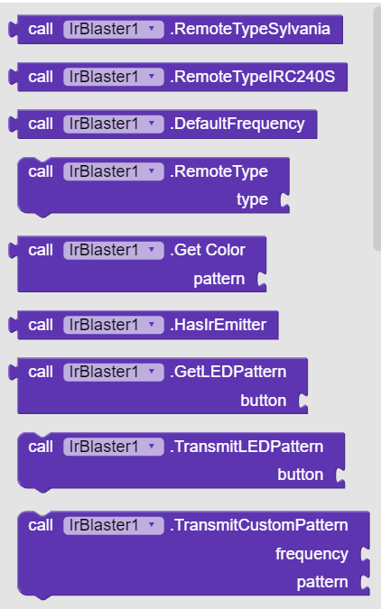 The IrBlaster extension for App Inventor 2 enables you to emit custom IR patterns, ideal for controlling various IR-compatible devices like RGB LED remotes. It supports different remote types, including Sylvania and IRC240S, allowing for seamless integration with your existing devices.